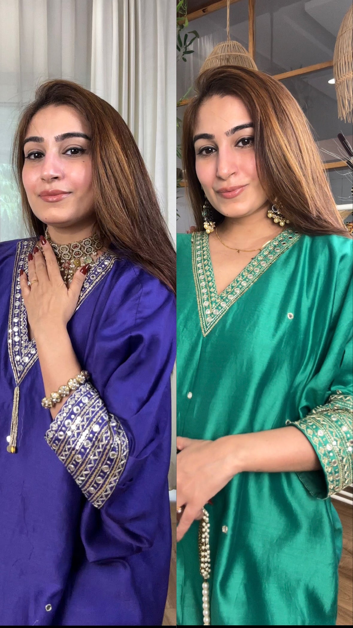 This 2 piece set features pure chanderi kurta with hand embroidered zari & mirror in antifit silhouette, comes with a same fabric pants. Fully lined.