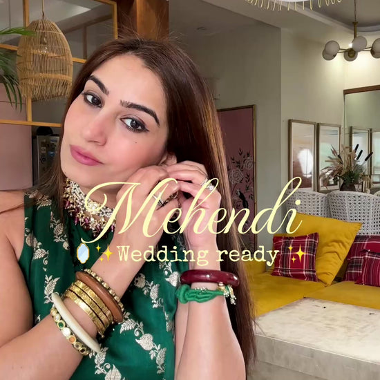 Crafted in rich emerald green Banarasi brocade, this set brings together traditional weave and a modern, easy silhouette. The sleeveless blouse with subtle hand detailing at the neckline comes with pearls hangings at the hem with the full flared sharara paired with a matching handcrafted potli finished with antique gold coins and tassels makes it perfect for mehendi, haldi or festive evenings.