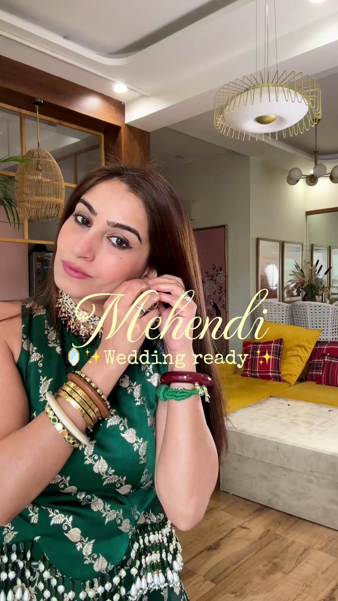 Emerald banarasi sharara set with potli